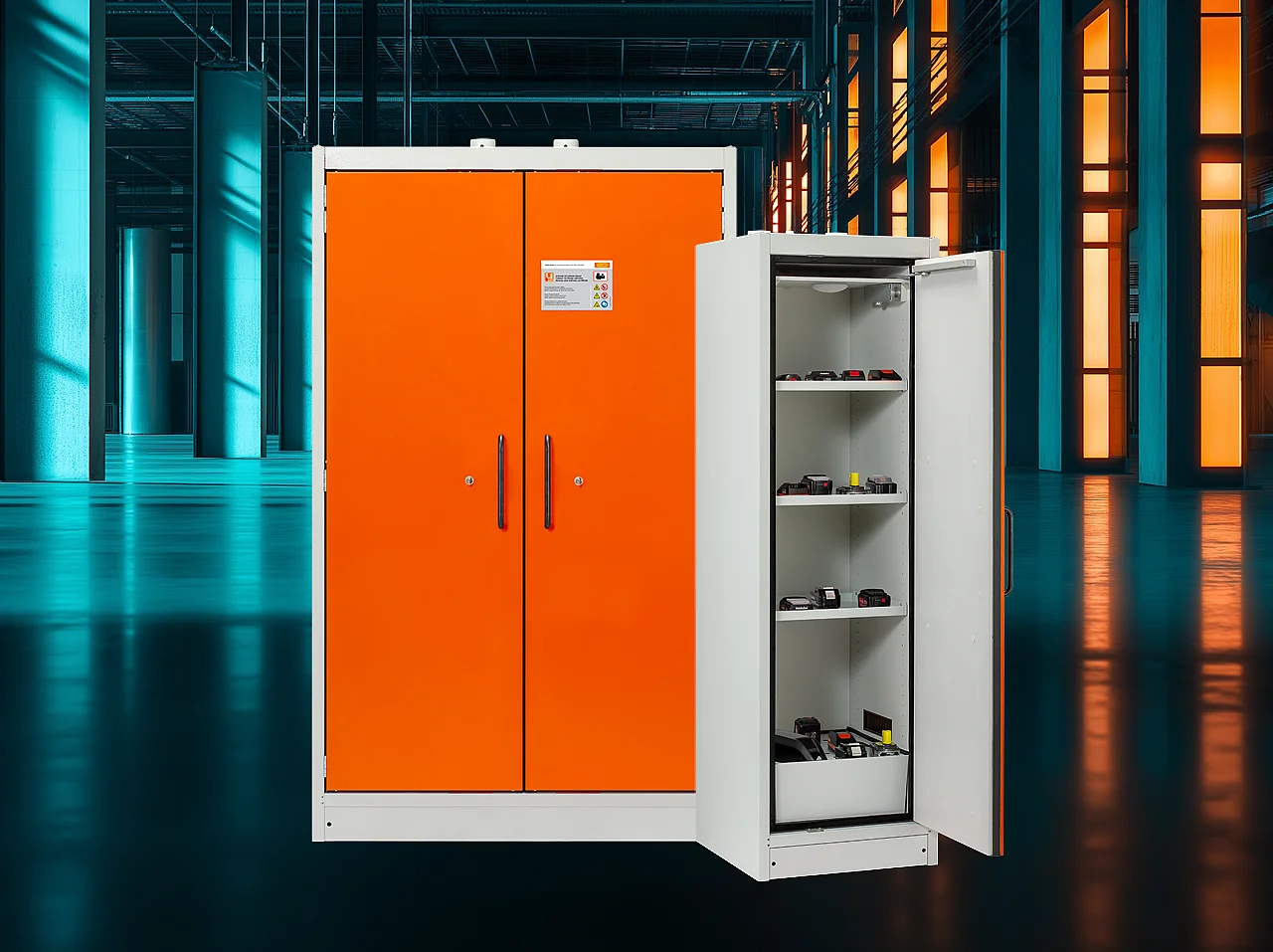 Sorgfalt bei Lagerung und Ladevorgängen ist daher essenziell. Gering bestückte Schränke, in denen ausschließlich ladende Lithium-Akkus aufbewahrt werden, reduzieren die Brandlast deutlich und erhöhen die Sicherheit im Betrieb.