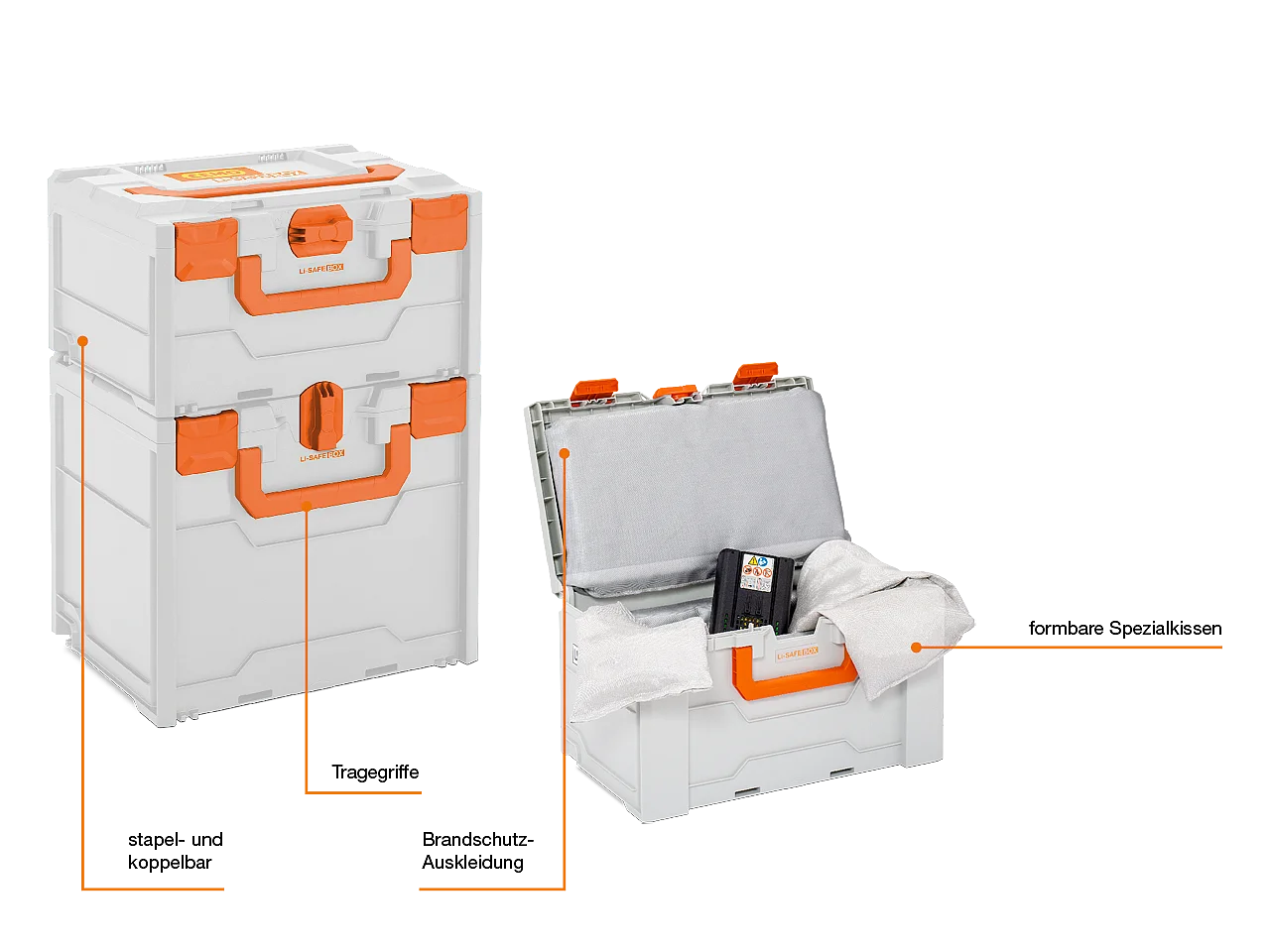 - Sicheres Transport- und Aufbewahrungssystem für Lithium-Batterien